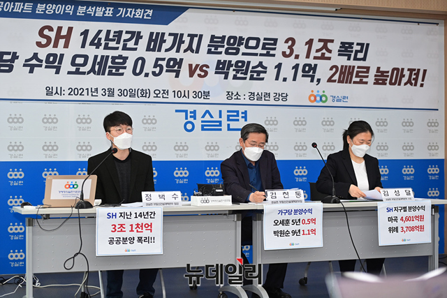 경실련은 서울주택도시공사(SH)가 지난 14년간 아파트 분양으로 3조 1,000억 원 이상의 이익을 챙겼다고 주장했다.