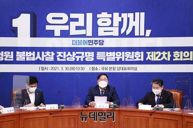 김태년 더불어민주당 당대표 직무대행이 30일 오전 국회에서 열린 국정원 불법사찰 진상규명 특별위원회 회의에 참석해 모두발언을 하고 있다. (사진=더불어민주당)