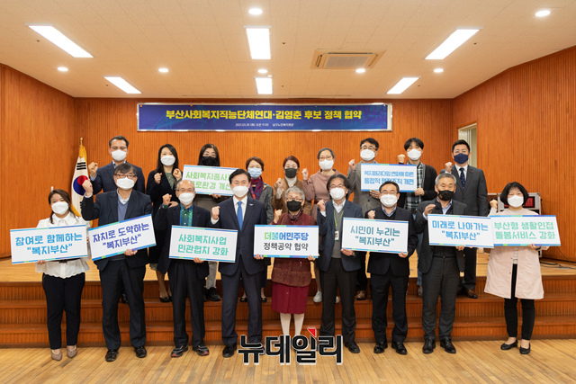 [포토] 정책협약식, 기념촬영하는 김영춘 부산시장 후보