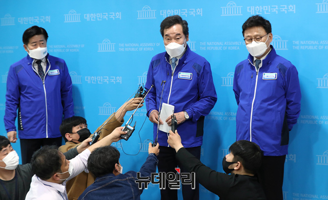 이낙연 더불어민주당 상임선대위원장이 31일 오전 국회 소통관에서 대국민호소 기자회견을 마치고 기자들의 질문에 답하고 있다.