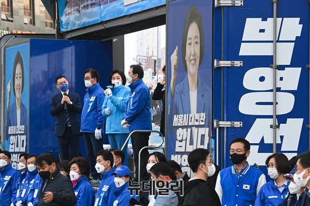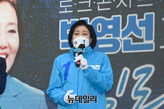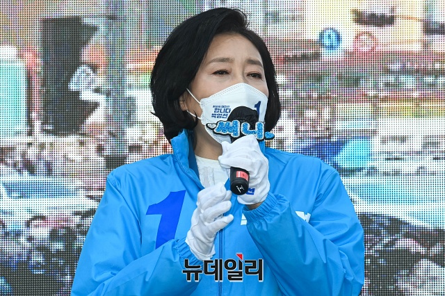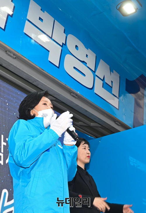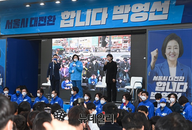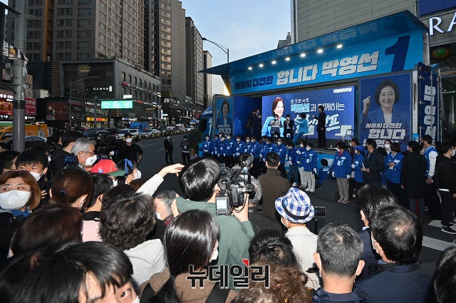 박영선 더불어민주당 서울시장 후보가 31일 오후 서울 관악구 서울대입구역 인근에서 열린 '박영선의 힐링캠프' 유세에서 지지호소를 하고 있다.