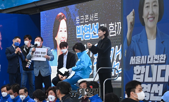 [포토] 박영선 후보 지원하는 안진걸 민생경제연구소장