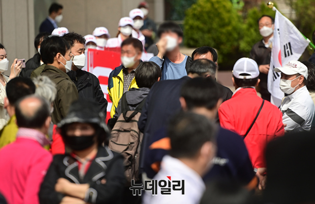 [포토] 오세훈 서울시장 후보 유세장에 등장한 대학생단체