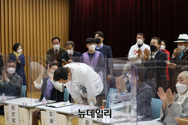[포토] 인사하는 오세훈 국민의힘 서울시장 후보