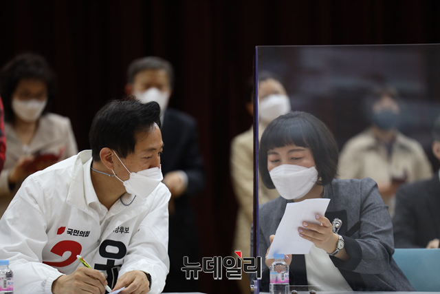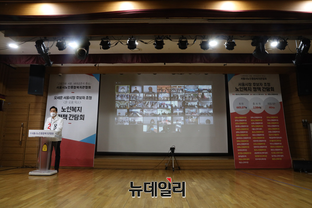 오세훈 국민의힘 서울시장 후보가 1일 오전 서울 종로구 종로노인종합복지관에서 열린 '노인복지 정책간담회'에 참석해 발언을 하고 있다. (사진=오세훈캠프)