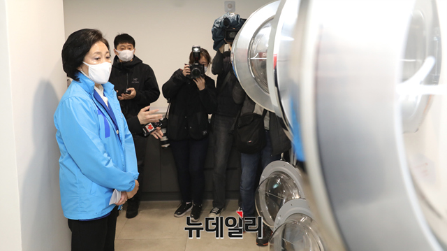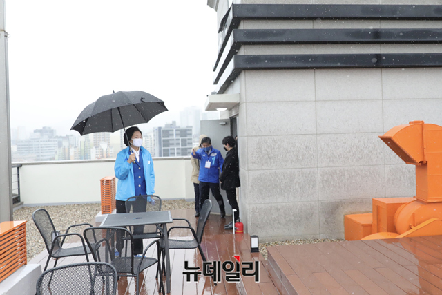 박영선 더불어민주당 서울시장 후보가 3일 오전 서울 성북구 안암동의 공공청년주택 안암생활을 방문해 시설을 둘러보고 있다. (사진=박영선캠프)