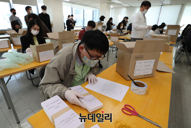 [포토] 4.7재보궐선거 본투표 용지 검수 작업