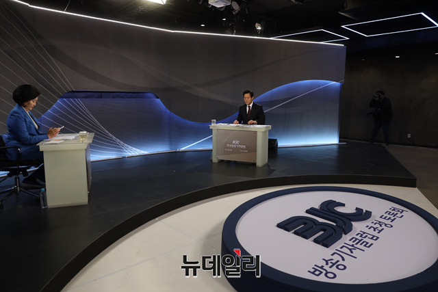 박영선 더불어민주당 서울시장 후보와 오세훈 국민의힘 서울시장 후보가 5일 오후 서울 양천구 예총회관에서 열린 한국방송기자클럽 초청 서울시장 보궐선거 후보자 토론회에 참석해 토론준비를 하고 있다. (사진=오세훈캠프)