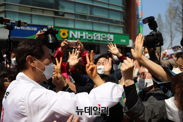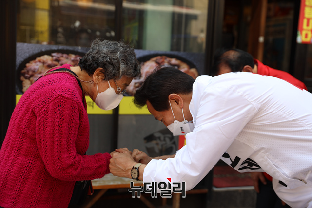 오세훈 국민의힘 후보가 6일 서울 강북구 수유동에서 시민들과 만나 지지를 호소하고 있다. (사진=오세훈캠프)