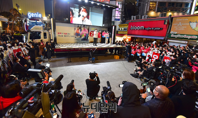 [포토] 오세훈 후보 마지막 유세장에 등장한 안철수
