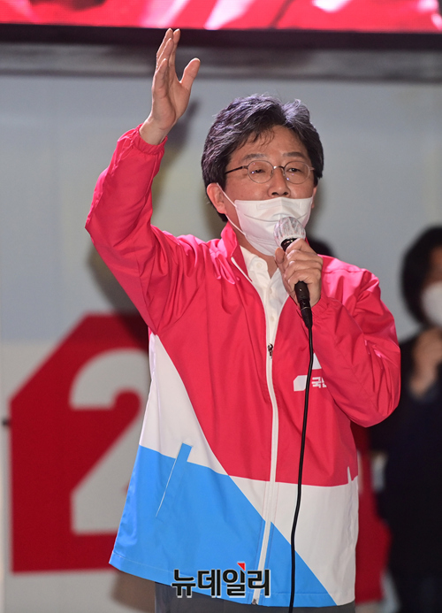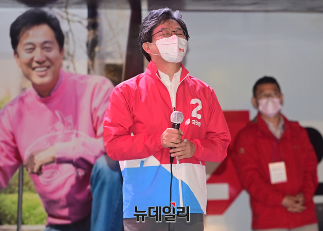 유승민 공동선대위원장이 선거유세 마지막 날인 6일 오후 서울 서대문구 신촌에서 열린 오세훈 서울시장 후보의 파이널 유세에 참석해 지지호소를 하고 있다.