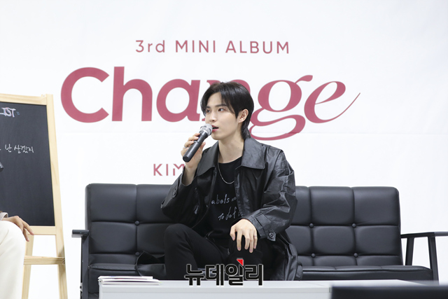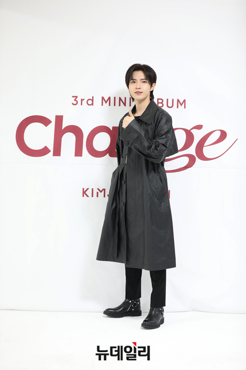 워너원 김재환이 7일 오후 온라인으로 열린 세 번째 미니앨범 'Change (체인지)' 발매 기념 기자간담회에서 포토타임을 갖고 있다.