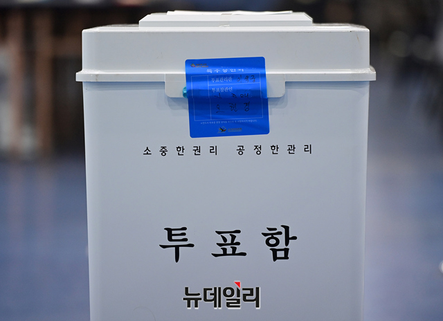 [포토] 개표소 도착한 투표함 봉인 확인하는 참관인