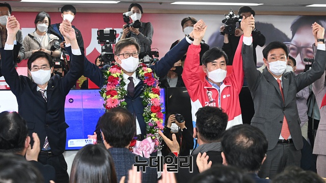 국민의힘 소속 박형준 부산시장 당선인은 "이번 선거로 표출된 민심에 따라 국정을 대전환하는 계기가 됐으면 하는 바람"이라고 당선 소감을 밝혔다.박 당선인은 8일 오전 2시20분 개표가 완료된 결과, 62.67%(96만1576표)의 득표율을 기록하면서 34.42%(52만8135표)에 그친 김영춘 더불어민주당 후보를 28.25%(43만3441표)p 차이로 꺾고 부산시장에 당선됐다. 박 당선인은 부산 16개구 모든 지역에서 김 후보에게 앞섰다.박 당선인은 선거일인 7일 밤 11시쯤 당선이 확실시되자 부산진구에 마련한 선거 캠프에서 "위대한 부산시민 여러분, 압도적 지지를 보내주셔서 감사하다"며 "갖은 어려움에도 흔들리지 않고 성원을 보내주신 시민을 섬기는 좋은 시정으로 보답하겠다"고 말했다.박형준, 김영춘 꺾고 부산시장 당선캠프 관계자들이 박 당선인 내외에게 꽃다발을 증정했고, 하태경 부산시당위원장을 비롯해 조경태·이주환·김미애 등 부산지역 국민의힘 의원들이 박 당선인의 손을 번쩍 들고 승리를 자축했다.박 당선인은 김영춘 민주당 후보에게도 위로의 말을 전했다. 그러면서 야권 승리는 국민의힘을 향한 지지가 아닌, 문재인정부의 실정으로 '정권심판' 바람이 불었기 때문이라고 해석했다."시민들의 뜨거운 지지가 박형준이 잘나서 또는 국민의힘이 잘해서라고 생각하지 않는다"고 전제한 박 당선인은 "저희가 오만하고 독선에 빠지면 언제든 그 무서운 심판의 민심은 저희를 향할 수 있다는 점을 명심하겠다"고 강조했다.박 당선인은 이어 "그동안 공적 가치를 지키며 열심히 살아왔다고 자부했지만 선거를 치르면서 제 부족함을 돌아보는 계기가 됐었다"며 솔직한 심정을 드러내기도 했다.그러면서 "더 겸손한 자세로 시정에 임해 시민들을 실망시키지 않겠다. 어려운 여건이지만 협치와 통합의 정신을 발휘하겠다"며 "부산의 새로운 도약을 위한 혁신의 파동이 있다는 것을 시민 여러분께서 체감할 수 있도록 만들겠다"고 다짐했다.이번 부산시장보궐선거는 민주당 소속 오거돈 전 시장의 권력형 성비위로 치러졌다. 박 당선인은 피해자에게 "치르지 않아도 될 선거 때문에 선거 기간 내내 고통받았을 피해 여성분께 새롭게 선출된 부산시장으로서 위로의 말을 전한다"고 했다."도덕적 비판 수긍" 엘시티 매각 의사 밝혀박 당선인은 당선 소감을 밝힌 후 '선거 기간 동안 제기된 의혹을 어떻게 해소할 것이냐'는 질문에 "그동안 왜곡되거나 잘못된 사실이 너무 많았다. 엘시티 거주 문제는 어떤 특혜도 없다는 것을 다시 확인해 드리겠다"며 "앞으로도 의문이 제기되면 일일이 설명하겠다"고 밝혔다.박 당선인은 그러면서 엘시티 매각 의사를 밝혔다. "시민 정서에 맞지 않는 집에 산다는 도덕적 비판은 제가 일정하게 수긍하기 때문에 머지않은 시점에 엘시티를 처리하겠다"고 밝힌 박 당선인은 "매각 과정에서 수익이 발생한다면 공익을 위해 쓰겠다"고 약속했다.박 당선인은 앞서 발표된 방송3사(KBS·MBC·SBS) 공동 출구조사에서 김 후보를 31%p 차이로 크게 따돌리며 일찌감치 당선이 유력했다.1년2개월간 임기 시작박 당선인은 이날 오전 11시 부산시선거관리위원회에서 당선증을 받으면 곧바로 임기가 시작된다. 오거돈 전 시장 잔여 임기인 내년 6월30일까지 1년2개월간이다.박 당선인은 첫 일정으로 부산시 동래구 충렬사를 참배할 예정이다. 이후 국민의힘 중앙당 의원총회 화상회의에 참석해 그동안 시정 탈환을 위해 함께 뛰어준 당 의원들에게 감사 인사를 전할 것으로 보인다.김 후보는 낙선의 쓴맛을 봤다. 그는 박 당선인의 소감 발표 1시간 전, 부산진구에 마련한 선거 캠프에 나타나 "민심의 큰 파도 앞에서 결과에 겸허하게 승복한다"며 "저와 민주당은 앞으로도 부산의 꿈을 결코 포기하지 않을 것"이라고 소감을 밝혔다. 개표 초반이었지만 격차가 워낙 커 일찌감치 마음을 접은 것으로 보인다.4·7 부산시장보궐선거 부산지역 유권자는 총 293만6301명으로, 이 중 154만7296명이 투표를 마쳐 투표율은 52.7%로 잠정집계됐다.