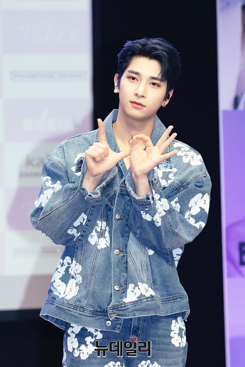 아이돌그룹 BAE173의 멤버 한결이 8일 오후 서울 강남구 일지아트홀에서 진행된 미니2집 '인터섹션 : 트레이스(INTERSECTION : TRACE)' 쇼케이스에서 포토타임을 갖고 있다.