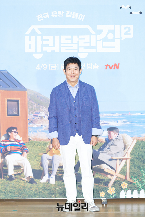 배우 성동일이 9일 오후 온라인으로 열린 tvN 예능'바퀴 달린 집2(연출 강궁, 송명진)' 제작발표회에서 포토타임을 갖고 있다.