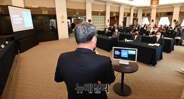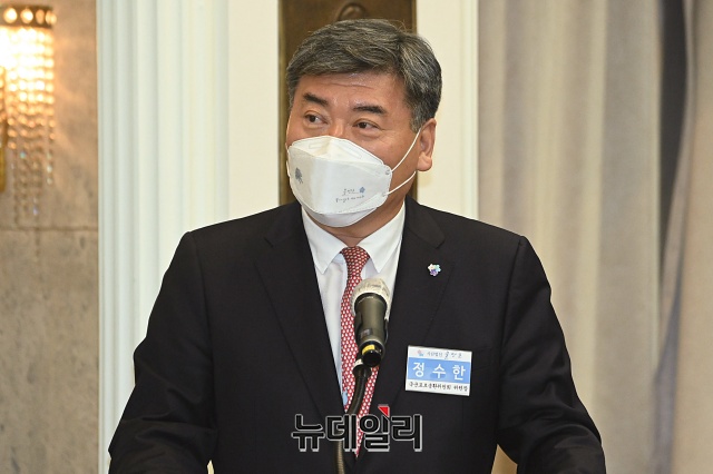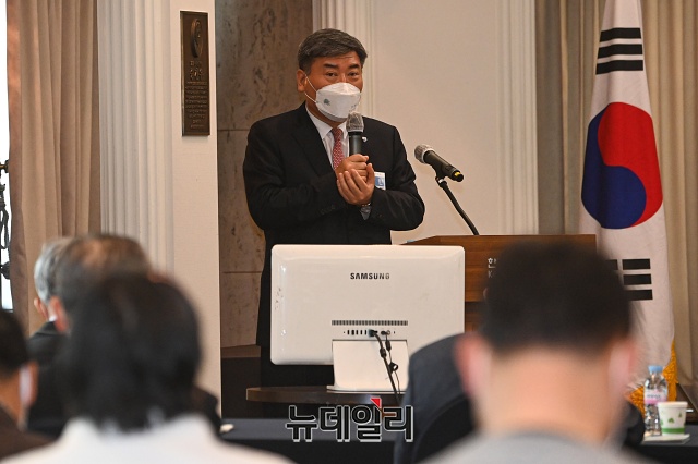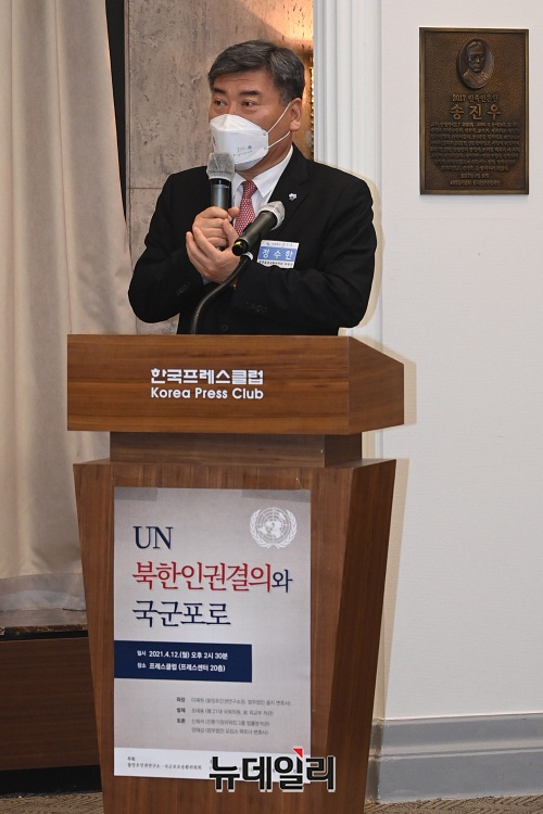 정수한 국군포로송환위원회 위원장이 12일 오후 서울 중구 프레스센터에서 열린 'UN 북한인권결의와 국군포로' 세미나에서 개회사를 하고 있다.