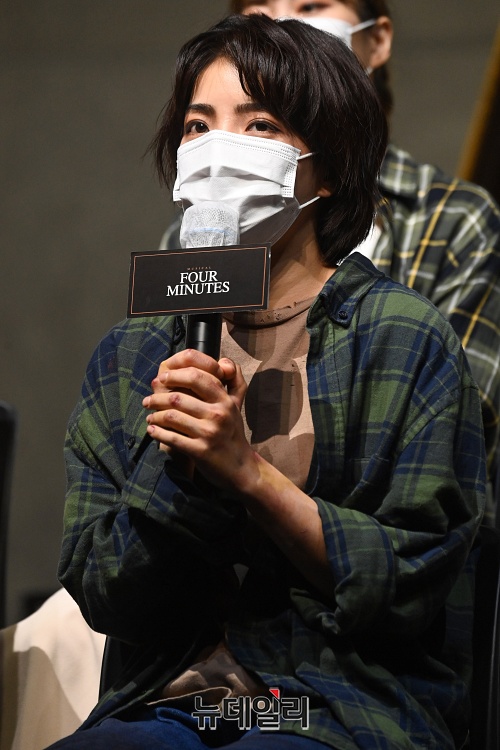 배우 김환희가 13일 오후 서울 중구 정동극장에서 열린 뮤지컬 '포미니츠' 프레스콜에서 인사말을 하고 있다.