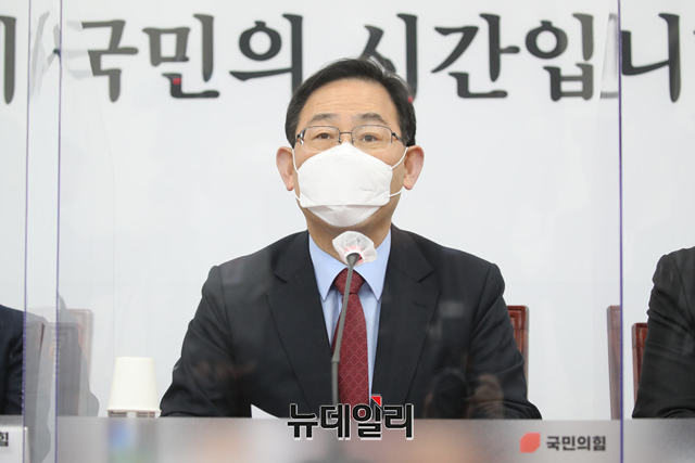 주호영 국민의힘 당대표 권한대행이 14일 오전 국회에서 열린 중진의원 연석회의에 참석해 발언을 하고 있다. (사진=국민의힘)