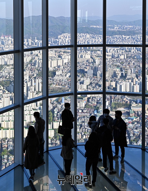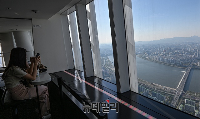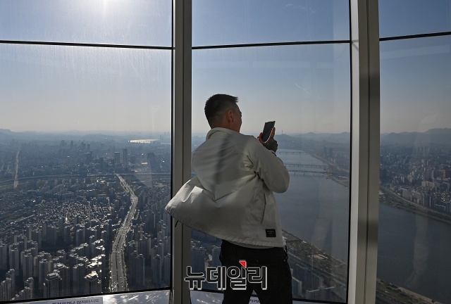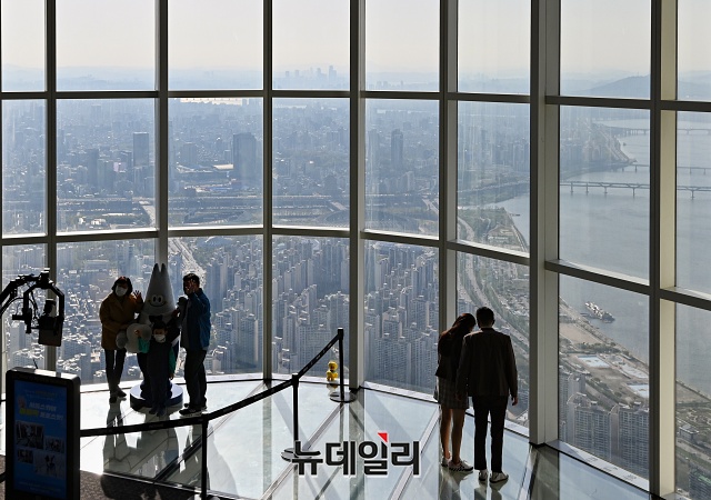 전국적으로 미세먼지가 '좋음' 상태를 보인 14일 오후 서울 송파구 롯데월드타워 서울스카이에서 바라본 서울 도심이 선명히 보이고 있다.