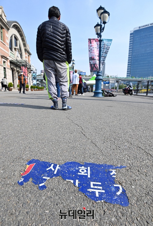 [포토] 신규 확진자 698명...세월에 뜯겨진 거리두기 안내 테이프