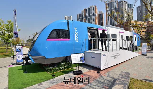 '수도권광역급행철도GTX-A(Great Train Express-A)' 철도차량 실물모형이 20일 오전 경기 화성시 동탄여울공원에서 전시회를 통해 일반인에게 첫 공개됐다.전시회는 GTX-A 노선을 따라 △동탄여울공원(4.20~22) △수서역주차장(4.27~29) △킨텍스문화공원(5.4~6)에서 각각 진행된다. 이번 전시회는 GTX-A 철도 차량을 제작하기에 앞서 일반 시민들의 다양한 의견을 수렴하기 위해 마련됐다.전시회를 마무리하면 GTX-A차량은 9월까지 설계를 마치고, 10월부터 제작에 들어갈 예정이다. (경기 화성=정상윤 기자)
