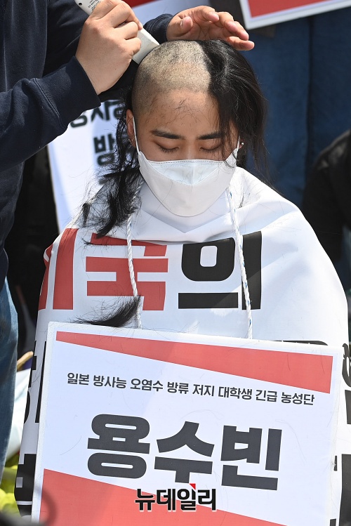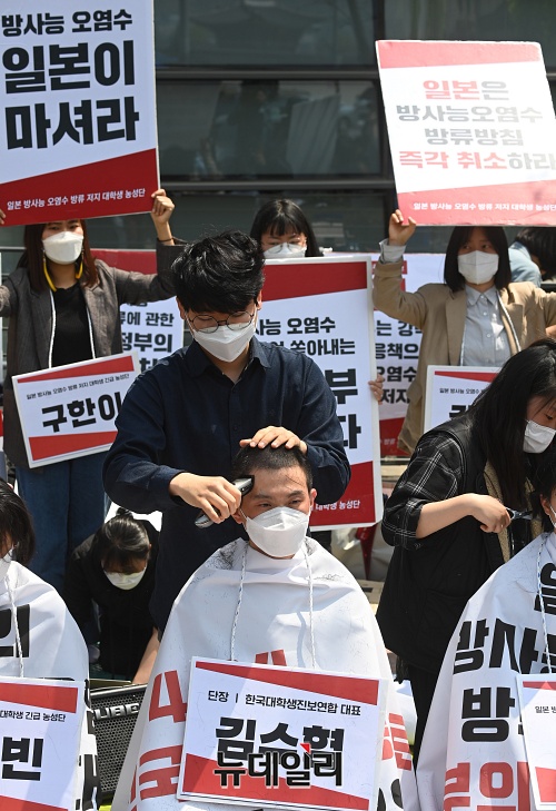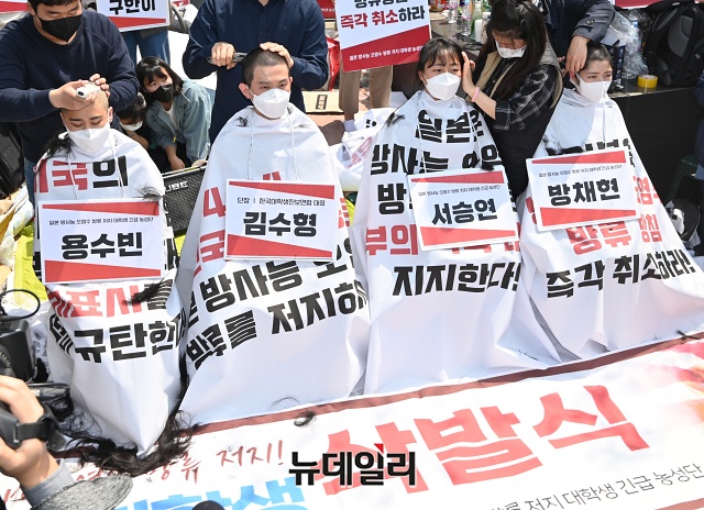 [포토] '일본 오염수 방류 규탄' 집단삭발하는 한국대학생진보연합