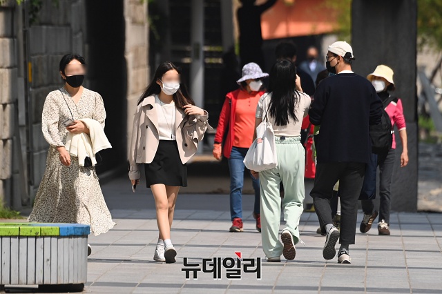 [포토] 절기상 '곡우(穀雨)' 따뜻한 봄 날씨에 겉옷 벗은 시민들