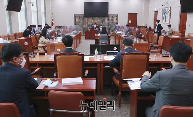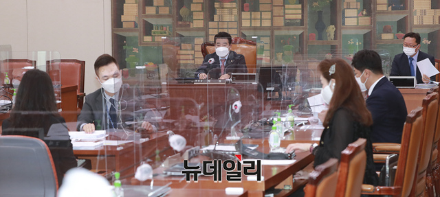 박정 소위원장이 21일 오전 국회에서 열린 제1차 문화체육관광위원회 체육관광법안심사소위원회에서 의사봉을 두드리고 있다.