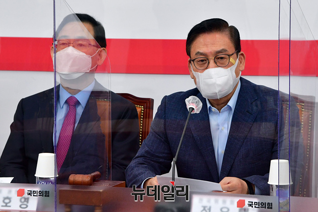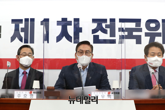 정우택 국민의힘 전국위의장이 22일 오전 국회에서 열린 제1차 전국위원회의에서 인사말을 하고 있다. (사진=공동취재단)