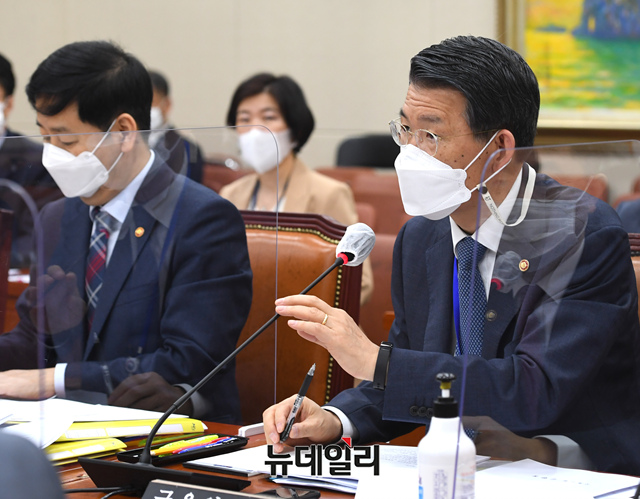 은성수 금융위원장이 22일 오전 국회에서 열린 정무위원회 전체회의에서 의원들의 질문에 답하고 있다. (사진=공동취재단)