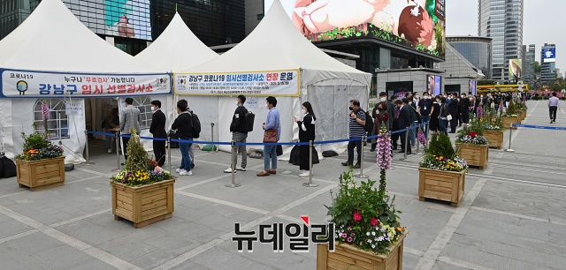 [포토] 코로나19 신규확진 797명...끝없는 검사대기 줄