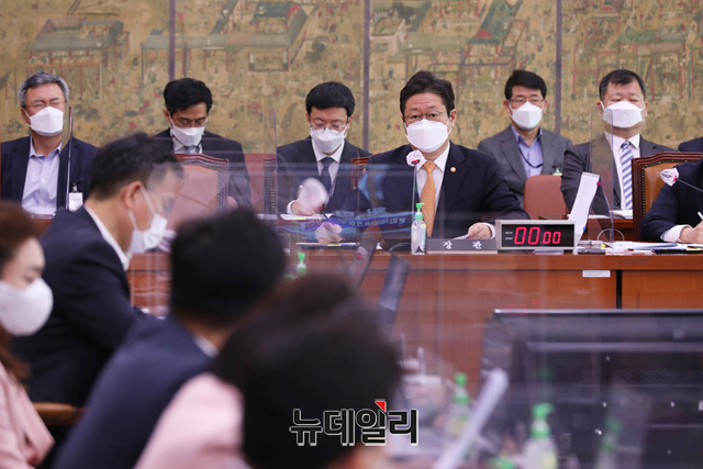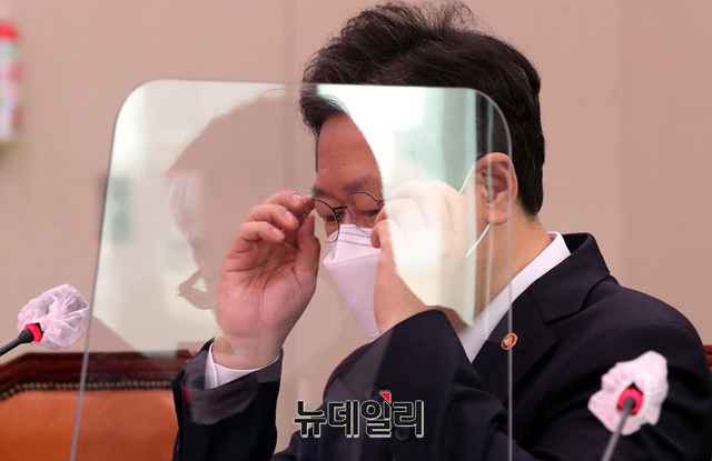 황희 문화체육관광부 장관이 27일 오전 국회에서 열린 문화체육관광위원회 전체회의에서 의원들의 질의에 답변하고 있다. (사진=공동취재단)