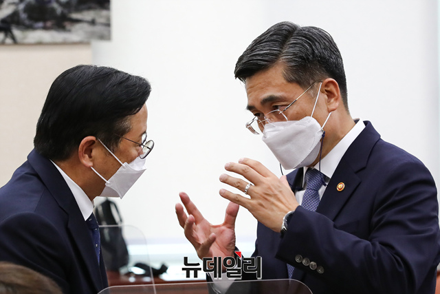 [포토] 대화 나누는 서욱 국방부 장관