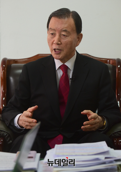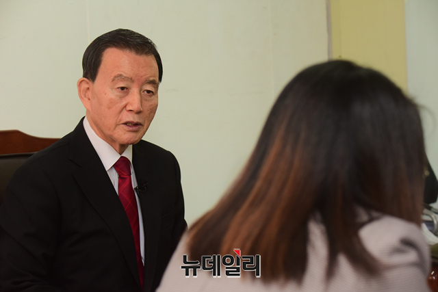 국민의힘 차기 당대표 선거 출마 의사를 밝힌 홍문표 의원이 27일 오전 서울 여의도 중앙보훈회관에서 마련된 홍 의원의 선거캠프에서 뉴데일리와 인터뷰를 갖고 있다.