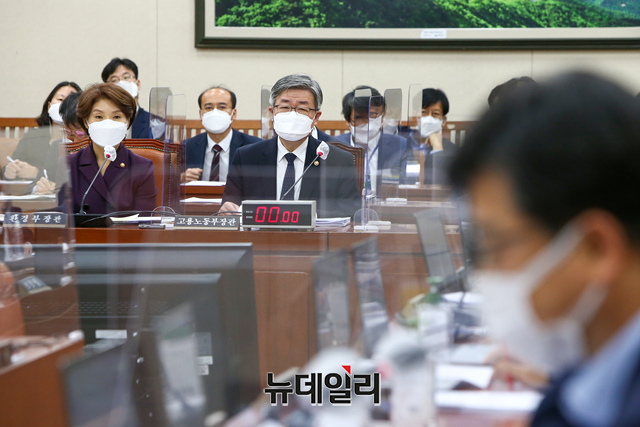 한정애 환경부 장관이 29일 국회에서 열린 환경노동위원회 전체회의에 출석해 의원들 질의에 답하고 있다. (사진=공동취재단)