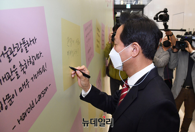 [포토] 오세훈 서울시장, 서울관광플라자 개관식 기념촬영