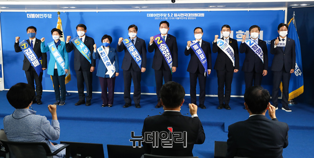 [포토] 화이팅 하는 더불어민주당 최고위원 후보들
