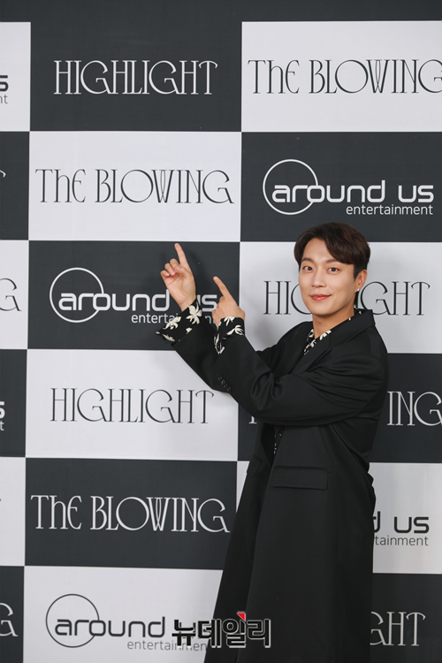 아이돌그룹 하이라이트 멤버 윤두준이 3일 오후 온라인으로 열린 3번째 미니앨범 'THE BLOWING(더 블로잉)' 발매기념 온라인 간담회에서 포토타임을 갖고 있다.
