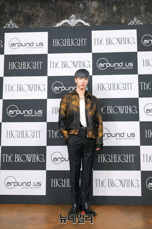 아이돌그룹 하이라이트 멤버 이기광이 3일 오후 온라인으로 열린 3번째 미니앨범 'THE BLOWING(더 블로잉)' 발매기념 온라인 간담회에서 포토타임을 갖고 있다.