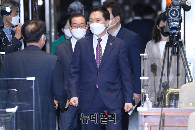 [포토] 긴급의총 참석하는 김기현 국민의힘 대표 권한대행