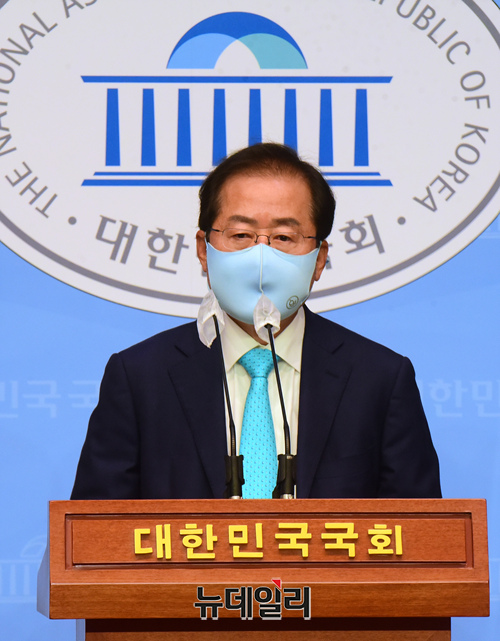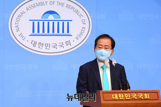 홍준표 무소속 의원이 10일 오전 국회 소통관에서 기자회견을 갖고 국민의힘 복당 의사를 밝히고 있다.
