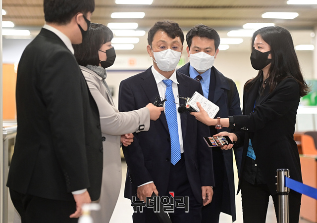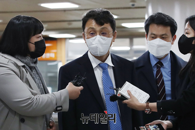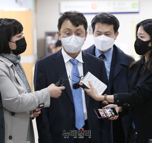 이진석 청와대 국정상황실장이 10일 오후 서울 서초구 서울중앙지법에서 열린 청와대의 울산시장 선거개입·하명수사 의혹 사건 재판에 참석하기 위해 법정으로 이동하고 있다.