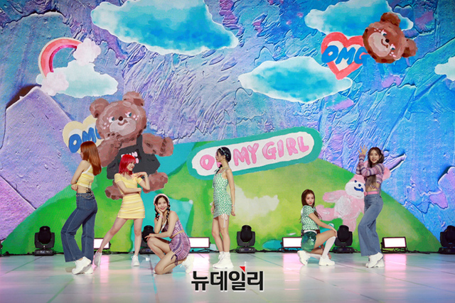 걸그룹 오마이걸이 10일 오후 온라인으로 열린 8번째 미니앨범 'Dear OHMYGIRL' 쇼케이스에서 타이틀곡 무대를 선보이고 있다.