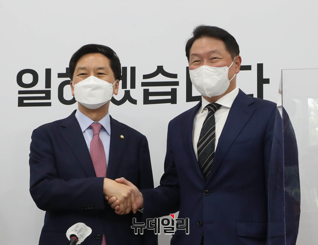 [포토] 악수 나누는 김기현·최태원