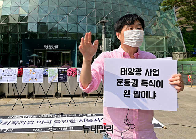 서민 단국대 교수가 13일 오후 서울시청 앞에서 미래대안행동 주최로 열린 서울시의회 규탄 기자회견에 참석해 박원순 전 서울시장의 행정을 규탄하고 있다.미래대안행동은 이날 기자회견을 통해 오세훈 서울시장에게 △사회적 기업 사업 몰아주기의 중심인 서울혁신기획관 해체 △운동권 기업의 불법, 무법의 무대가 된 은평서울혁신센터 사업의 전면 재검토 △태양광 업체 일감 몰아주기 상징인 원전하나줄이기 사업 중단 △박원순 전 시장 10년의 불법과 비리를 조사할 민관 합동 조사단 구성 등을 요구했다.