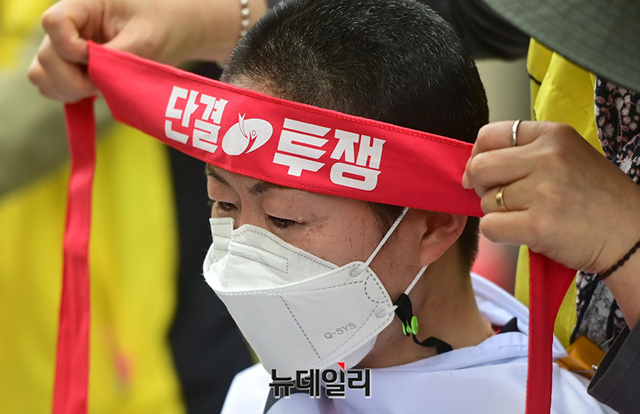 [포토] 홈플러스 여성노동자, 점포 폐점·매각 반대 집단 삭발