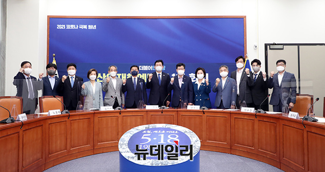 송영길 더불어민주당 대표가 17일 오전 국회에서 열린 산업재해예방TF 1차회의에 참석해 기념촬영을 하고 있다. (사진=더불어민주당)