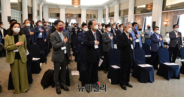 '공정과 상식 회복을 위한 국민연합 창립 및 기념토론회' 주요 참석자들이 21일 오전 서울 중구 한국프레스센터에서 기념촬영을 하고 있다.이날 토론회는 정용상 동국대 교수의 진행으로 진중권 전 동양대 교수가 기조발제를 맡았다. 지정토론에는 김민전 경희대 교수, 김태규 변호사가 나섰다. 송상현 전 국제형사재판소장이 '국제질서의 변동과 우리의 과제'를 주제로 기조강연을 맡았다.창립 대표 발기인은 △고상진 △권대중 △김경민 △김탁 △김동우 △김보혁 △김응규 △김종욱 △김창준 △문명화 △박상진 △박용만 △설창욱 △손기섭 △오단이 △오진영 △윤승규 △윤정현 △이성우 △이세라 △이철균 △이효민 △정용상 △조준래 △조평규 △채수연 △최석준 △최순종 △최재욱 △한주빈 △홍대유 △황희만 등 33인이다.