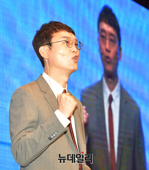 국민의힘 당 대표로 출마한 김웅 후보가 25일 오전 서울 마포구 누리꿈스퀘에서 열린 1차 전당대회에서 비전발표를 하고 있다. (사진=공동취재단)